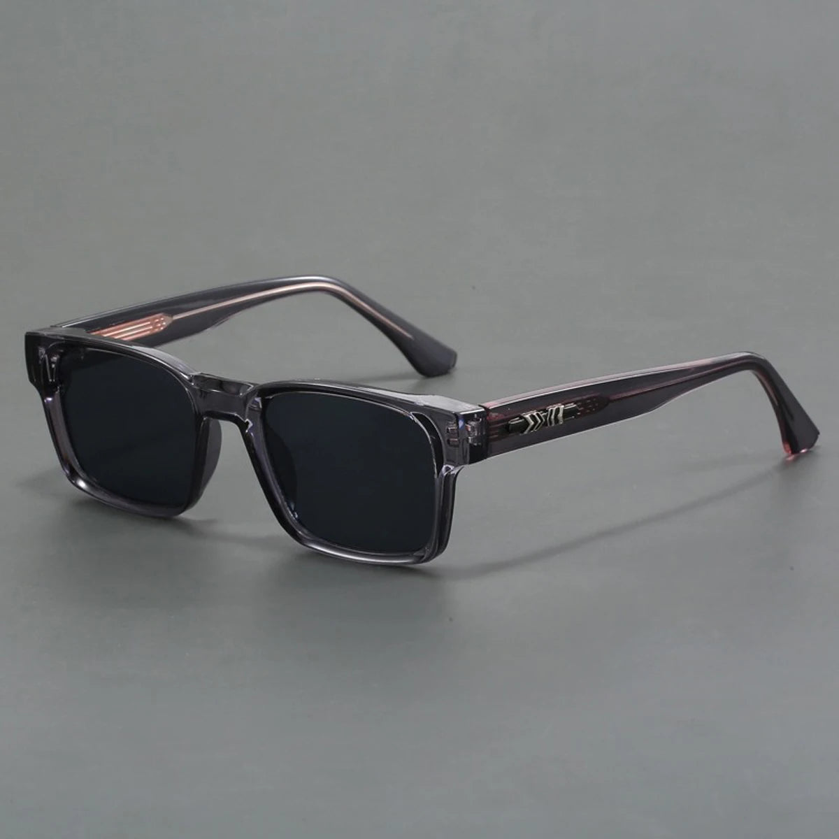 Flat-top acetate frames and squared lenses shape a confident fit with visual structure. Tinted lenses cut glare while maintaining contrast and clarity. Metal-core arms provide grip, durability, and day-long stability.